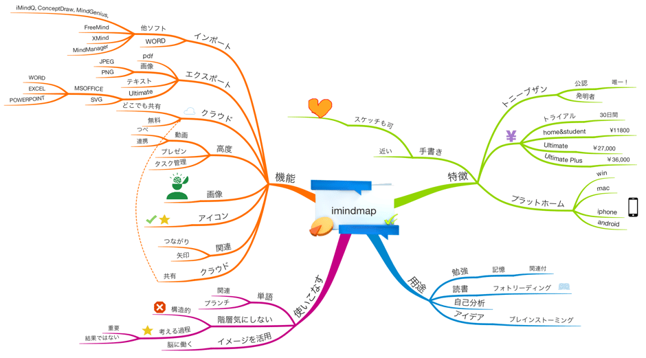 その分値段は高いですが、マインドマップをフル活用したいという場合は、購入を検討してみると良いかもしれません。