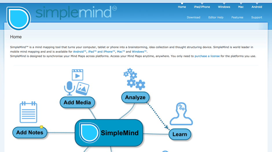 Windows,Mac,iPhone,Android全てのプラットフォームに対応しており、スマホ用のアプリ「SimpleMind+」が提供されています。